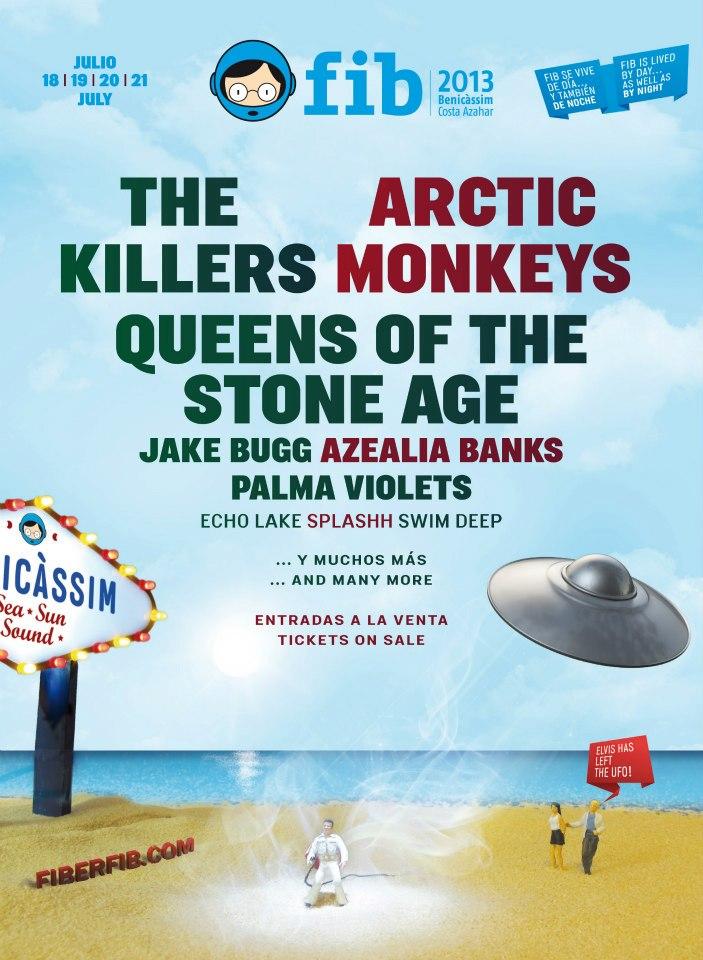 El FIB que ya había anunciado a dos de sus cabezas de cartel, The Killers y Queens of the Stone Age, así otros interesantes nombres como los de Azealia Banks y Jake Bugg, entre otros. Finalmente y como se filtró, la banda británica Arctic Monkeys estarán presentes en la decimonovena edición del Festival Internacional de Benicassim y, probablemente, presentarán el que será su nuevo y quinto disco. Por tanto no hay sorpresas y se confirman el nombre que estaba en todas las quinielas, los Arctic repetirán actuación en el festival tras su presencia en la edición del 2011.Gran cartel sin duda el que está formando el FIB para intentar arreglar el que fue el de 2012. En el cartel de la foto de la derecha podéis ver como queda el cartel actual. Un saludo!!